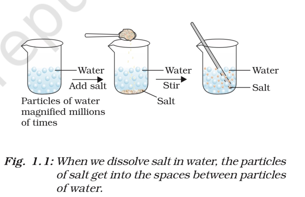 Activity ______________1.1 • Take a 100 mL beaker. • Fill half the beaker with water and mark the level of water. • Dissolve some salt/ sugar with the help of a glass rod. • Observe any change in water level. • What do you think has happened to the salt? • Where does it disappear? • Does the level of water change? Please solve the activity and explain