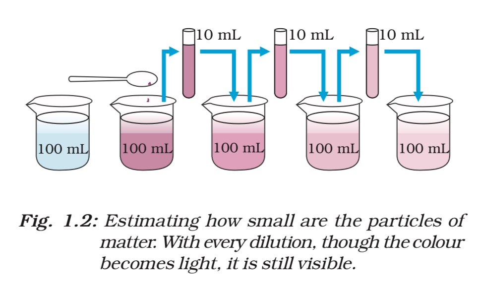 - This implies that matter is not continuous, but is made up of tiny particles, which keep dividing themselves into smaller and smaller particles, as seen in the case of potassium permanganate crystals.